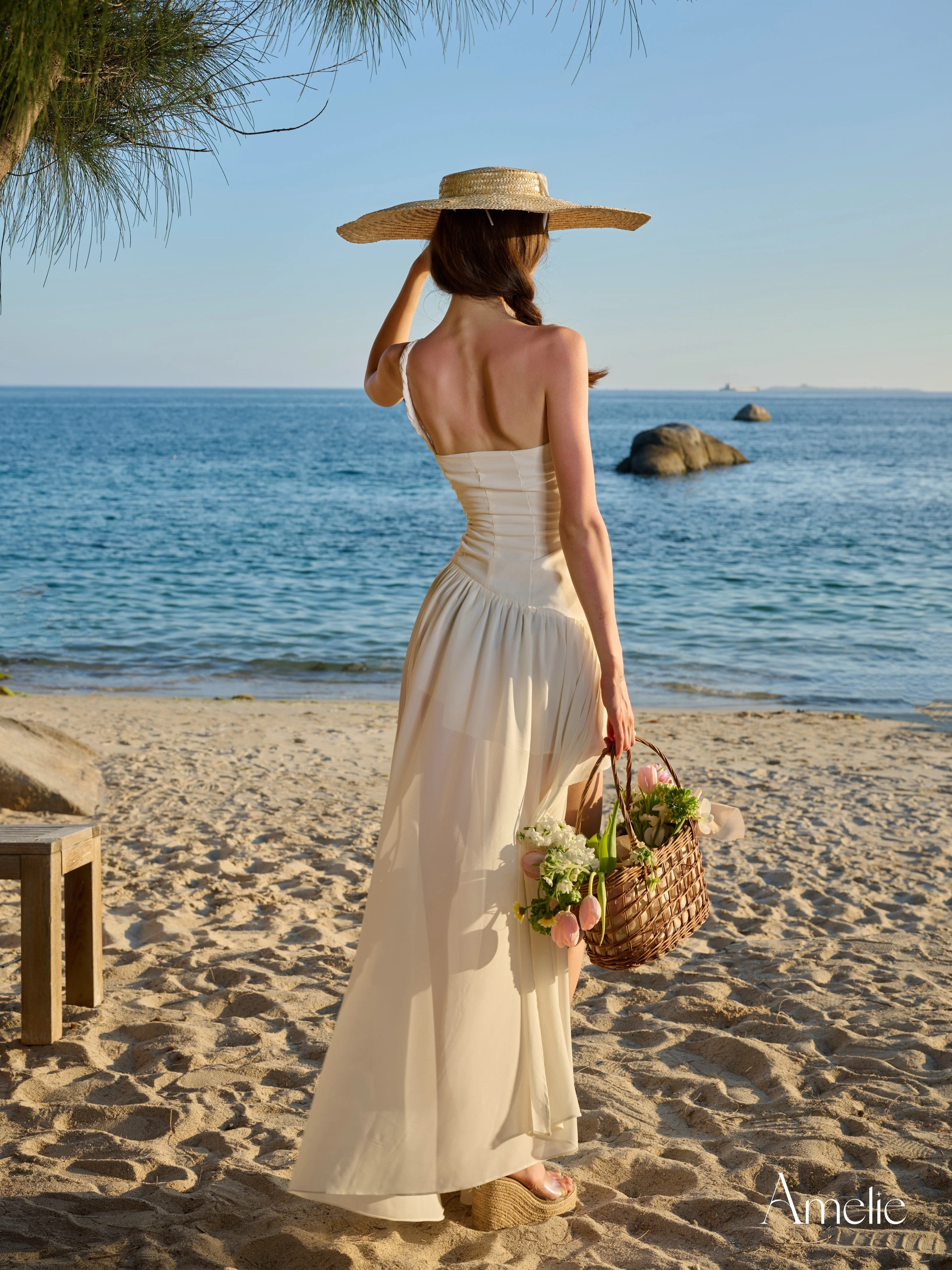 - One-shoulder dress with delicate pleats, figure-flattering
